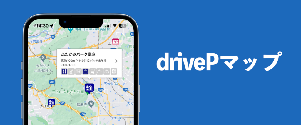 drivePmap v3は、オートキャンプ場や道の駅などを地図で確認できるアプリです。
